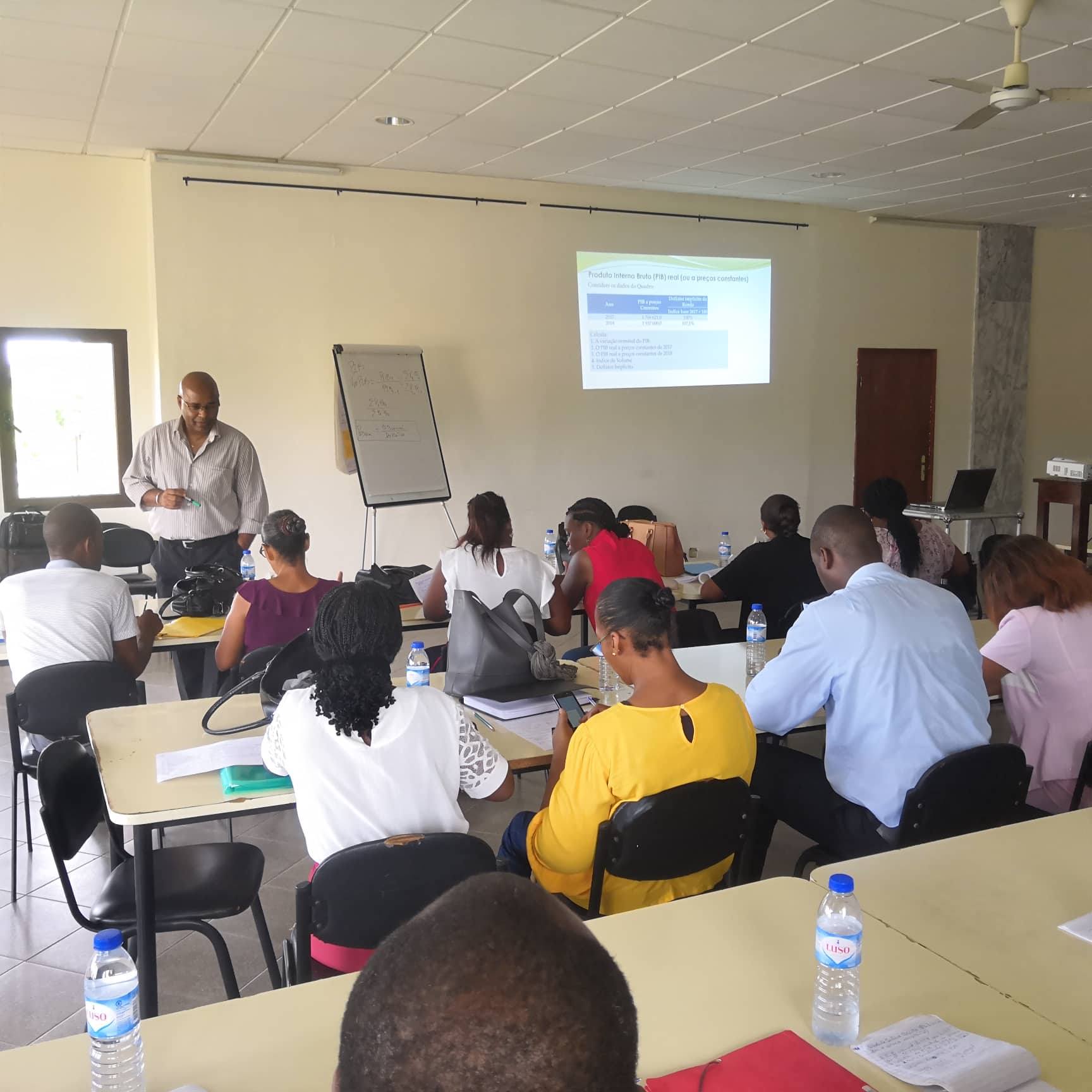 Esta formação teve por objetivo conter os seguintes tópicos: estatística descritiva, demografias, conceitos e nomenclaturas estatísticas, relatórios -IPC, contas nacionais e por último análise e interpretação dos dados.